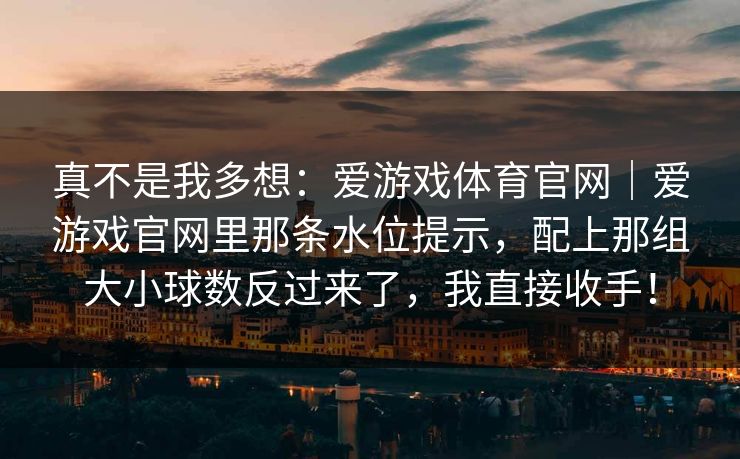 真不是我多想:爱游戏体育官网|爱游戏官网里那条水位提示,配上那组大小球数反过来了,我直接收手!