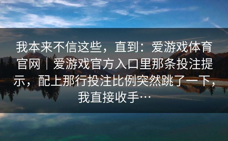 我本来不信这些,直到:爱游戏体育官网|爱游戏官方入口里那条投注提示,配上那行投注比例突然跳了一下,我直接收手…