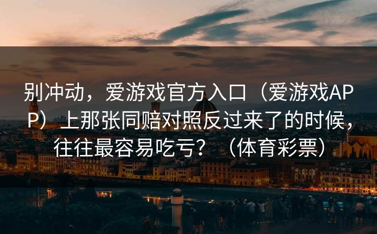 别冲动,爱游戏官方入口(爱游戏APP)上那张“同赔对照反过来了”的时候,往往最容易吃亏