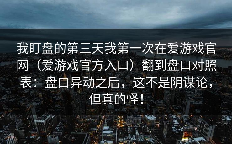 我盯盘的第三天我第一次在爱游戏官网(爱游戏官方入口)翻到盘口对照表:盘口异动之后,这不是阴谋论,但真的怪!