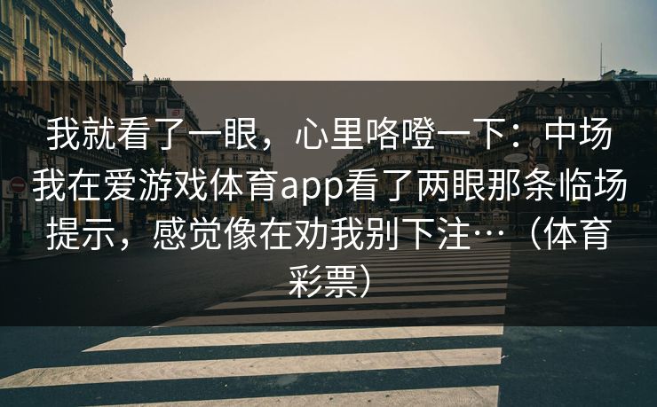 我就看了一眼,心里咯噔了一下:中场我在爱游戏体育app看了两眼那条临场提示,感觉像在劝我别下注…(体育彩票)
